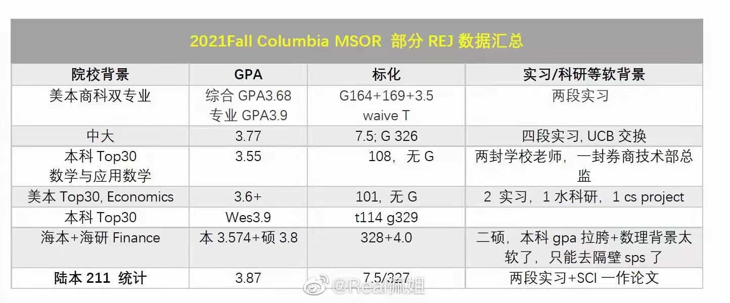 恭喜斑马博士客户获得哥伦比亚大学 Columbia University MS in Operations Research (MSOR) 录取!这个专业微博上有博主PO出拒信记录!很多都是背景不错例如双硕士,美本的大神收到拒信!而我们的小客户社区大学转学UCLA,在UCLA均分3.7,没有考GRE,没有大牛推荐,不得不说文书的经历包装,优势挖掘等方面帮了很大的忙! 斑马博士留学中心专门整理了哥伦比亚大学 Columbia University MS in Operations Research (MSOR) 的详细的专业解读,供大家参考