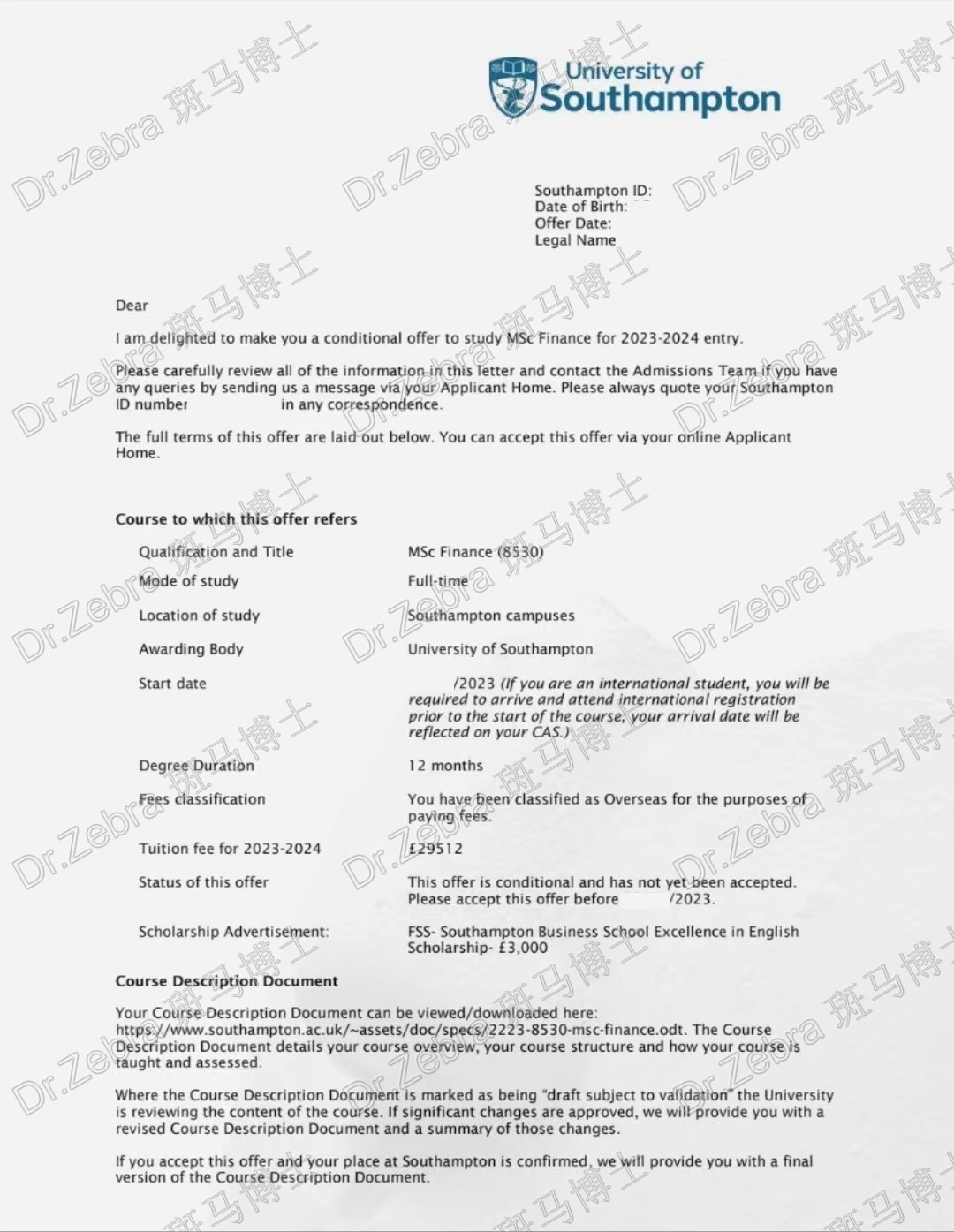 【斑马博士捷报】南安普顿大学University of Southampton MSc Finance金融硕士录取!
