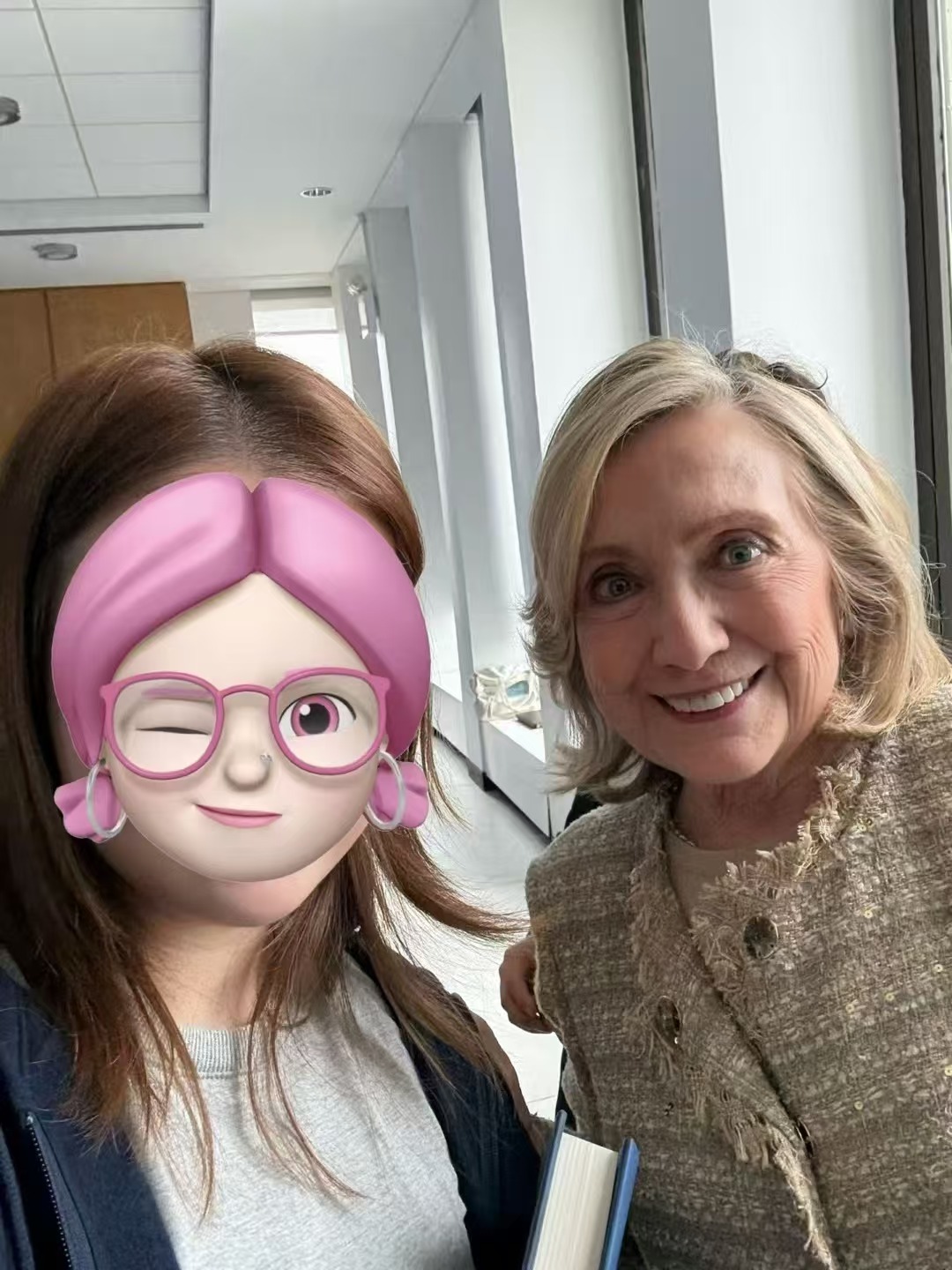 目前U叔这位mentee已经在哥大读书啦,前阵子#还跟客座教授希拉里合影了~ 所有的低分高录,#都离不开真正evidence-based爬藤经验(#一定谨慎网上误人子弟的爬藤攻略“小抄”),还有#成系统的爬藤策略,包括#文书,#面试,#resume的#profile的优化与展示~~