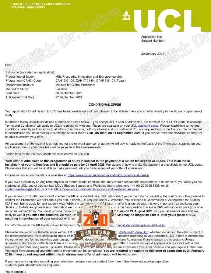 U叔的Mentee一天下了#2个UCL Offer (UCL IPAD + Prosperity, Innovation and Entrepreneurship )不出意外 UCL申请的第三个专业也会下Offer,期待③申③中!